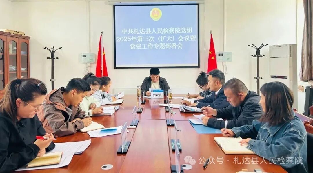 为深入贯彻新时代党的建设总要求,进一步加强和改进检察机关党的建设工作,5月22日,札达县人民检察院召开第三次党组(扩大)会议,全面部署2025年党建重点工作。院党组书记、检察长罗双红主持会议并作讲话,全体党组成员及干警参加会议。 会议传达学习习近平总书记在第三十五个全国助残日到来之际作出的重要指示批示精神、习近平总书记对贵州毕节市黔西市游船倾覆事故作出的重要指示批示精神、习近平总书记关于加强党的作风建设论述摘编及《中国共产党章程》。 会议审议通过了《札达县人民检察院2025年党建工作要点》。要点围绕政治建设、思想建设、组织建设、作风建设、纪律建设等方面,明确了全年党建工作的目标任务和具体措施。在政治建设方面,持续强化党对检察工作的绝对领导,深入学习贯彻习近平新时代中国特色社会主义思想和党的二十大、二十届历次全会精神,引导党员干警深刻领悟“两个确立”的决定性意义,增强“四个意识”、坚定“四个自信”、做到“两个维护”;在思想建设方面,丰富学习形式,创新学习载体,通过开展“三会一课”、主题党日、专题党课、实地参观等活动,提高党员干警的思想政治素质;在组织建设方面,加强党支部标准化规范化建设,严格落实组织生活会、民主评议党员等制度,提升党支部的凝聚力和战斗力;在作风建设和纪律建设方面,持之以恒正风肃纪,严格执行中央八项规定及其实施细则精神,加强廉政教育,营造风清气正的政治生态。 罗双红强调,党建工作是检察机关的根本性建设,全体党员干警要提高政治站位,充分认识党建工作的重要性,切实增强责任感和使命感。一要强化责任落实,党支部书记要切实履行第一责任人职责,支委成员要认真落实“一岗双责”,形成齐抓共管的工作格局;二要注重融合发展,找准党建工作与检察业务的结合点,推动党建工作与检察业务深度融合、相互促进,以党建引领检察工作高质量发展;三要创新工作方法,积极探索富有检察特色的党建工作新模式、新路径,打造具有影响力的党建品牌,提升党建工作的吸引力和实效性。 会议还研究了其他事项。
